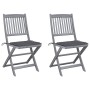 Este moderno juego de sillas de comedor de madera con cojines da un toque de estilo natural al jardín, la terraza o el patio. Este juego de sillas plegables es una gran opción para comer. Estas sillas de comedor están hechas de madera maciza de acacia, una madera dura tropical, por lo que son resistentes a la intemperie y muy duraderas. La madera maciza de acacia posee la fuerza para soportar pesos y para aguantar el desgaste y el paso del tiempo. La superficie en gris deslavado se limpia fácilmente con un paño húmedo. Las sillas se pueden plegar para ahorrar espacio cuando no se usen. Además, los cojines incluidos proporcionan un plus de comodidad mientras descansas o comes. Cada cojín cuenta con dos juegos de cuerdas para fijarlo firmemente en la silla.