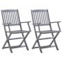 Este moderno juego de sillas de exterior de madera dará un toque de estilo natural a tu jardín, terraza o patio. Este juego de sillas plegables será una gran opción para cenar al aire libre. Estas sillas de comedor están hechas de madera de acacia de calidad suprema, una madera dura tropical, que es resistente a la intemperie y duradera durante muchos años. La superficie de color gris deslavado es fácil de limpiar con un paño húmedo. Las sillas se pueden plegar para ahorrar espacio cuando no se usen.