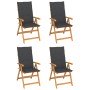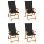 Sillas de jardín 4 uds madera de teca con cojines rojo tinto