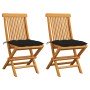 Sillas de jardín 6 uds madera de teca con cojines azul claro
