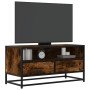 Mueble TV madera ingeniería y metal roble ahumado 80x34,5x40 cm