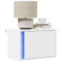 Mejora tu dormitorio con esta mesilla de noche de pared con luces LED. Complementa fácilmente cualquier estilo de muebles de tu hogar. Material estable y duradero: La madera de ingeniería es un material duradero y estable con una superficie lisa que es resistente a la humedad, la deformación y la rotura, lo que la convierte en una opción fiable para una variedad de proyectos.Luces LED RGB para un ambiente agradable: Esta mesita de noche cuenta con luces LED que se pueden ajustar fácilmente para crear un espectáculo de luces personalizado. Puedes personalizar los modos, los colores y el brillo para mejorar el ambiente de tu hogar.Amplio espacio de almacenamiento: Esta mesita de noche tiene 1 cajón, lo que proporciona un amplio espacio para mantener tus revistas, libros, mandos a distancia y otros objetos pequeños bien organizados y al alcance.Ahorro de espacio: El diseño de pared aprovecha al máximo el espacio no utilizado de la pared, convirtiéndolo en una zona de almacenamiento compacta y eficiente. Información útil:Los tornillos y los tacos para el interior de la pared no están incluidos. Te recomendamos buscar y utilizar tornillos y tacos adecuados específicamente para tus paredes. Si no estás seguro, puedes consultar con un profesional. Lee y sigue cada paso de las instrucciones.El producto tiene un conector USB que necesita una fuente de alimentación USB certificada de 5 V (no incluida).