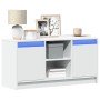 Con un diseño moderno y práctico, este mueble para la TV con luces LED definitivamente se conviertirá en el centro de atención de tu habitación. Material duradero:La madera de ingeniería tiene una calidad excepcional, con una superficie lisa y también con fuerza, estabilidad y resistencia a la humedad.Luces LED RGB para un ambiente agradable: Este soporte de TV cuenta con luces LED que se pueden ajustar fácilmente para crear un espectáculo de luces personalizado. Puedes personalizar los modos, los colores y el brillo para mejorar el ambiente de tu hogar.Amplio espacio de almacenamiento: Este mueble de TV proporciona un amplio espacio de almacenamiento para mantener tus revistas, libros, DVD y dispositivos multimedia bien organizados y al alcance de la mano.Superficie estable y resistente: La robusta superficie es ideal para colocar el televisor y el equipo de música o algunos objetos decorativos como jarrones o macetas. Información útil:El producto tiene un conector USB que necesita una fuente de alimentación USB certificada de 5 V (no incluida). Advertencia:Para evitar que vuelque, este producto debe usarse con el dispositivo de fijación a la pared suministrado.