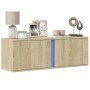 Mueble de TV de pared con luces LED roble ahumado 80x31x35 cm