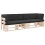 Sofá de palets 2 plazas cojines gris madera de pino impregnada
