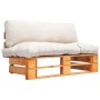Nuestro sofá con palets de jardín será una opción ideal para relajarte y disfrutar del buen tiempo.Con un diseño de palets atemporal, el sofá de madera añadirá un toque de encanto rústico a tu patio, jardín o salón. Hecho de madera de pino impregnada, el juego al aire libre es duradero y resistente a la intemperie. Este sofá de patio tiene una construcción sólida y requiere poco mantenimiento. Entregado con cojines suaves y gruesos, nuestro sofá de jardín de 2 plazas te brindará la máxima comodidad. Este sofá de jardín es fácil de montar.Ten en cuenta que la madera es un producto natural y puede presentar imperfecciones.