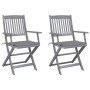 Este moderno juego de sillas de comedor de madera con cojines da un toque de estilo natural al jardín, la terraza o el patio. Este juego de sillas plegables es una gran opción para comer. Estas sillas de comedor están hechas de madera maciza de acacia, una madera dura tropical, por lo que son resistentes a la intemperie y muy duraderas. La madera maciza de acacia posee la fuerza para soportar pesos y para aguantar el desgaste y el paso del tiempo. La superficie en gris deslavado se limpia fácilmente con un paño húmedo. Las sillas se pueden plegar para ahorrar espacio cuando no se usen. Además, los cojines incluidos proporcionan un plus de comodidad mientras descansas o comes. Cada cojín cuenta con dos juegos de cuerdas para fijarlo firmemente en la silla.