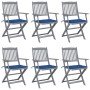 Sillas de jardín plegables 4 uds cojines madera maciza acacia