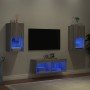 Muebles de TV de pared con luces LED 4 piezas roble ahumado