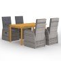 ¡Crea una estética atractiva y cohesionada en el espacio al aire libre de tu casa con este juego de comedor para jardín! La mesa de comedor está hecha de madera maciza de acacia con un acabado al aceite, por lo que es estable, duradera y fácil de mantener. Con una estructura de acero con recubrimiento en polvo cubierto con ratán sintético resistente a la intemperie, estas sillas de comedor son robustas y fáciles de limpiar. El respaldo se reclina tirando del botón del lateral. Gracias a la construcción ligera, las sillas son fáciles de mover. También se entrega con cojines comodísimos y bien acolchados para ofrecer el confort definitivo. Las fundas de poliéster apenas requieren mantenimiento y también se pueden quitar y lavar. Nota importante: Recomendamos cubrir el set de comedor en caso de lluvia, nieve y heladas para que sea más duradero.