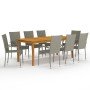 ¡Crea una estética atractiva y cohesionada en el espacio al aire libre de tu casa con este juego de comedor para jardín! La mesa de comedor está hecha de madera maciza de acacia con un acabado al aceite, por lo que es estable, duradera y fácil de mantener. Con una estructura de acero con recubrimiento en polvo cubierta con ratán PE resistente a la intemperie, estas sillas de comedor son robustas y fáciles de limpiar. Las sillas de exterior son ligeras y se pueden apilar para ahorrar espacio cuando no se usen. Nota importante: Recomendamos cubrir el set de comedor en caso de lluvia, nieve y heladas para que sea más duradero.