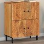 Este mueble auxiliar, con un look atemporal, está pensado para ser un excelente complemento para tu hogar. Madera maciza de mango: La madera maciza de mango es una madera dura, tropical y resistente, que sirve para fabricar muebles robustos. Las bonitas vetas de la madera hacen que cada mueble sea ligeramente diferente al resto. Hecho de madera maciza de mango, el mueble es duradero y estable.Amplio espacio de almacenaje: El armario ofrece un amplio espacio de almacenaje para mantener tus cosas bien organizadas y al alcance.Función expositora: La superficie del mueble de almacenaje va genial para colocar objetos decorativos, álbumes de fotos o pequeñas plantas.Patas robustas: Las patas de hierro añaden solidez y estabilidad al mueble. Advertencia:Para evitar que vuelque, este producto debe usarse con el dispositivo de fijación a la pared suministrado.