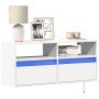 Este mueble de TV de pared es la solución perfecta para la casa, con el fin de maximizar el espacio y mantener el suelo despejado.Material estable y duradero: La madera de ingeniería es un material duradero y estable con una superficie lisa que es resistente a la humedad, la deformación y la rotura, lo que la convierte en una opción fiable para una variedad de proyectos.Luces LED RGB para un ambiente agradable: Este armario de TV cuenta con luces LED que se pueden ajustar fácilmente para crear un espectáculo de luces personalizado. Puedes personalizar los modos, los colores y el brillo para mejorar el ambiente de tu hogar.Amplio espacio de almacenamiento: Este soporte de TV tiene 1 cajón y 1 compartimento, lo que proporciona un amplio espacio para guardar tus elementos esenciales diarios, como libros, DVD, revistas, suministros multimedia y otros artículos, perfectamente organizados y al alcance de la mano.Ahorro de espacio: El diseño de pared aprovecha al máximo el espacio no utilizado de la pared, convirtiéndolo en una zona de almacenamiento compacta y eficiente.Diseño DIY: El mueble de TV flotante ofrece infinitas opciones de diseño, lo que te permite utilizarlo solo o combinarlo con otros muebles altos de TV para crear un centro de entretenimiento completo.Información útil:Los tornillos y los tacos para el interior de la pared no están incluidos. Te recomendamos buscar y utilizar tornillos y tacos adecuados específicamente para tus paredes. Si no estás seguro, puedes consultar con un profesional. Lee y sigue cada paso de las instrucciones.El producto tiene un conector USB que necesita una fuente de alimentación USB certificada de 5 V (no incluida).