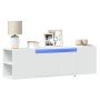 Este mueble de TV de pared es la solución perfecta para la casa, con el fin de maximizar el espacio y mantener el suelo despejado.Material estable y duradero: La madera de ingeniería es un material duradero y estable con una superficie lisa que es resistente a la humedad, la deformación y la rotura, lo que la convierte en una opción fiable para una variedad de proyectos.Luces LED RGB para un ambiente agradable: Este armario de TV cuenta con luces LED que se pueden ajustar fácilmente para crear un espectáculo de luces personalizado. Puedes personalizar los modos, los colores y el brillo para mejorar el ambiente de tu hogar.Amplio espacio de almacenamiento: Este soporte de TV tiene 2 cajones, lo que proporciona un amplio espacio para guardar sus elementos esenciales diarios, como libros, DVD, revistas, suministros multimedia y otros artículos, perfectamente organizados y al alcance de la mano.Ahorro de espacio: El diseño de pared aprovecha al máximo el espacio no utilizado de la pared, convirtiéndolo en una zona de almacenamiento compacta y eficiente.Diseño DIY: El mueble de TV flotante ofrece infinitas opciones de diseño, lo que te permite utilizarlo solo o combinarlo con otros muebles altos de TV para crear un centro de entretenimiento completo.Información útil:Los tornillos y los tacos para el interior de la pared no están incluidos. Te recomendamos buscar y utilizar tornillos y tacos adecuados específicamente para tus paredes. Si no estás seguro, puedes consultar con un profesional. Lee y sigue cada paso de las instrucciones.El producto tiene un conector USB que necesita una fuente de alimentación USB certificada de 5 V (no incluida).