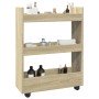 Carro de almacenaje estrecho 3 niveles madera roble ahumado
