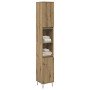 Armario de baño madera contrachapada gris hormigón 30x30x190 cm