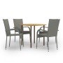 ¡Crea una estética atractiva y cohesionada en el espacio al aire libre de tu casa con este juego de comedor para jardín! La mesa de comedor está hecha de madera maciza acacia muy duradera, lo que la hace robusta y estable. La superficie con acabado de aceite también la hace adecuada para uso en el exterior. Con una estructura de ratán resistente a la intemperie, las sillas de comedor son robustas y fáciles de limpiar. Estas sillas de jardín se pueden apilar para ahorrar espacio cuando no están en uso. Nota: Para prolongar la vida útil de los muebles de exterior, te recomendamos que los limpies con regularidad y no los dejes al aire libre sin protección innecesariamente.Limpiar: Usa una solución de jabón suaveAlmacenamiento: Si es posible, guarda el producto en un lugar fresco y seco en el interior. Si el producto se almacena al aire libre, protégelo con una funda impermeable. Limpia y seca el exceso de agua o nieve de las superficies planas después de una lluvia o nevada. Permite la ventilación para evitar daños relacionados con la humedad.