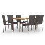 Juego de muebles de comedor de jardín 7 piezas ratán PE negro