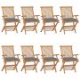 Sillas de jardín 8 uds madera maciza de teca con cojines verdes
