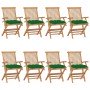 Sillas de jardín 8 uds madera maciza de teca con cojines negros