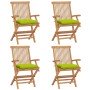 Sillas de jardín 8 uds madera teca con cojines verde brillante