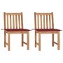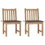 Este juego de sillas de jardín de madera extrafuerte te proporcionará un lugar perfecto para relajarte y disfrutar del sol en tu jardín o patio. Construidas con madera maciza de teca muy duradera, estos muebles de teca han sido secados al horno y lijados finamente para darles una apariencia muy lisa. La madera de teca es conocida por su excepcional robustez y resistencia a la intemperie, lo que la hace mucho más adecuada para muebles de jardín que cualquier otro tipo de madera. La madera de teca es la elección perfecta si quieres comprar un mueble de jardín duradero. Se les ha aplicado un hermoso acabado a base de agua para dar a la madera un color cálido. Las estables sillas de exterior tienen un aspecto refinado que encaja de inmediato en cualquier hogar. El cojín incluido es práctico y tiene una función decorativa. Nota: Para prolongar la vida útil de los muebles de exterior, te recomendamos que los limpies con regularidad y no los dejes al aire libre sin protección innecesariamente.Limpieza: Usa una solución de jabón suaveAlmacenamiento: Si es posible, guarda el producto en un lugar fresco y seco en el interior. Si el producto se almacena al aire libre, protégelo con una funda impermeable. Limpia y seca el exceso de agua o nieve de las superficies planas después de una lluvia o nevada. Permite la ventilación para evitar daños relacionados con la humedad.
