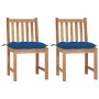 Este juego de sillas de jardín de madera extrafuerte te proporcionará un lugar perfecto para relajarte y disfrutar del sol en tu jardín o patio. Construidas con madera maciza de teca muy duradera, estos muebles de teca han sido secados al horno y lijados finamente para darles una apariencia muy lisa. La madera de teca es conocida por su excepcional robustez y resistencia a la intemperie, lo que la hace mucho más adecuada para muebles de jardín que cualquier otro tipo de madera. La madera de teca es la elección perfecta si quieres comprar un mueble de jardín duradero. Se les ha aplicado un hermoso acabado a base de agua para dar a la madera un color cálido. Las estables sillas de exterior tienen un aspecto refinado que encaja de inmediato en cualquier hogar. El cojín incluido es práctico y tiene una función decorativa. Nota: Para prolongar la vida útil de los muebles de exterior, te recomendamos que los limpies con regularidad y no los dejes al aire libre sin protección innecesariamente.Limpieza: Usa una solución de jabón suaveAlmacenamiento: Si es posible, guarda el producto en un lugar fresco y seco en el interior. Si el producto se almacena al aire libre, protégelo con una funda impermeable. Limpia y seca el exceso de agua o nieve de las superficies planas después de una lluvia o nevada. Permite la ventilación para evitar daños relacionados con la humedad.