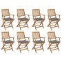Sillas de jardín plegables 8 uds y cojines madera maciza acacia