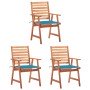 Este moderno juego de sillas de comedor de madera con cojines dará un toque de estilo natural a tu jardín, terraza o patio. Este juego de sillas de madera será una gran opción para cenar al aire libre. Estas sillas de jardín están hechas de madera maciza de acacia, una madera dura tropical, que es resistente a la intemperie y duradera para años de uso. La superficie con acabado de aceite es fácil de limpiar con un paño húmedo. El diseño de listones aportará un encanto rústico. Además, los cojines incluidos brindan mayor comodidad al sentarse. Está confeccionado en 100% poliéster que ha sido tratado para hacerlo impermeable. Cada cojín tiene dos juegos de cuerdas para fijarlo firmemente a la silla. Nota: Para prolongar la vida útil de los muebles de exterior, te recomendamos que los limpies con regularidad y no los dejes al aire libre sin protección innecesariamente.Limpieza: Usa una solución de jabón suaveAlmacenamiento: Si es posible, guarda el producto en un lugar fresco y seco en el interior. Si el producto se almacena al aire libre, protégelo con una funda impermeable. Limpia y seca el exceso de agua o nieve de las superficies planas después de una lluvia o nevada. Permite la ventilación para evitar daños relacionados con la humedad.