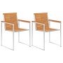 Estas sillas de jardín de madera están diseñadas para convertirse en el centro de atención de tu jardín o patio. Las sillas de comedor están fabricadas en madera maciza de acacia y acero inoxidable de alta calidad, lo que las hace muy duraderas, resistentes al óxido y fáciles de limpiar con un paño húmedo. Siéntate para disfrutar de una deliciosa cena al exterior o simplemente relájate y disfruta del buen tiempo con este clásico juego de sillas de jardín. Nota: Para prolongar la vida útil de los muebles de exterior, te recomendamos que los limpies con regularidad y no los dejes al aire libre sin protección innecesariamente.Limpiar: Usa una solución de jabón suaveAlmacenamiento: Si es posible, guarda el producto en un lugar fresco y seco en el interior. Si el producto se almacena al aire libre, protégelo con una funda impermeable. Limpia y seca el exceso de agua o nieve de las superficies planas después de una lluvia o nevada. Permite la ventilación para evitar daños relacionados con la humedad.