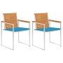 Estas sillas de madera para jardín están diseñadas para ser el centro de atención del jardín o patio. La sillas de comedor están hechas de madera maciza de acacia y acero inoxidable de gran calidad, por lo que son muy duraderas, resistentes a la oxidación, robustas y fáciles de limpiar con un paño húmedo. El cojín incluido es más que un complemento práctico; también tiene una función decorativa. Siéntate y disfruta de una adorable comida al aire libre o tan solo relájate y disfruta del buen tiempo con este clásico juego de sillas para jardín. Nota: Para prolongar la vida de tus muebles de exterior, te recomendamos que los protejas con una funda impermeable.