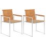 Estas sillas de jardín de madera están diseñadas para convertirse en el centro de atención de tu jardín o patio. Las sillas de comedor están hechas de madera maciza de acacia y acero inoxidable de alta calidad, lo que las hace muy duraderas, resistentes a la oxidación, robustas y fáciles de limpiar con un paño húmedo. El cojín incluido es más que un aporte práctico; también tiene una función decorativa. Siéntate para disfrutar de una deliciosa cena al aire libre o simplemente relájate y disfruta del clima con este clásico juego de sillas de jardín. Nota: Para prolongar la vida útil de los muebles de exterior, te recomendamos que los limpies con regularidad y no los dejes al aire libre sin protección innecesariamente.Limpiar: Usa una solución de jabón suaveAlmacenamiento: Si es posible, guarda el producto en un lugar fresco y seco en el interior. Si el producto se almacena al aire libre, protégelo con una funda impermeable. Limpia y seca el exceso de agua o nieve de las superficies planas después de una lluvia o nevada. Permite la ventilación para evitar daños relacionados con la humedad.