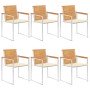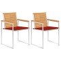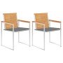 Estas sillas de jardín de madera están diseñadas para convertirse en el centro de atención de tu jardín o patio. Construido con teca duradera, este mueble ha sido curado, secado al horno y luego lijado para darle una apariencia muy suave. La madera de teca es conocida por su excepcional solidez y resistencia a la intemperie, lo que la hace mucho más adecuada para muebles de jardín que cualquier otro tipo de madera. La madera de teca es la elección perfecta si deseas comprar un mueble de jardín duradero. La estructura de acero inoxidable de alta calidad también los hace altamente duradero, resistentes al robusto óxido. El cojín incluido es más que un práctico aporte; también tiene una función decorativa. Siéntate para disfrutar de una deliciosa estancia en el exterior o simplemente relájate y disfruta del clima con este clásico juego de sillas de jardín. Nota: Para prolongar la vida útil de los muebles de exterior, te recomendamos que los limpies con regularidad y no los dejes al aire libre sin protección innecesariamente.Limpiar: Usa una solución de jabón suaveAlmacenamiento: Si es posible, guarda el producto en un lugar fresco y seco en el interior. Si el producto se almacena al aire libre, protégelo con una funda impermeable. Limpia y seca el exceso de agua o nieve de las superficies planas después de una lluvia o nevada. Permite la ventilación para evitar daños relacionados con la humedad.