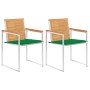 Estas sillas de jardín de madera están diseñadas para convertirse en el centro de atención de tu jardín o patio. Construido con teca duradera, este mueble ha sido curado, secado al horno y luego lijado para darle una apariencia muy suave. La madera de teca es conocida por su excepcional solidez y resistencia a la intemperie, lo que la hace mucho más adecuada para muebles de jardín que cualquier otro tipo de madera. La madera de teca es la elección perfecta si deseas comprar un mueble de jardín duradero. La estructura de acero inoxidable de alta calidad también los hace altamente duradero, resistentes al robusto óxido. El cojín incluido es más que un práctico aporte; también tiene una función decorativa. Siéntate para disfrutar de una deliciosa estancia en el exterior o simplemente relájate y disfruta del clima con este clásico juego de sillas de jardín. Nota: Para prolongar la vida útil de los muebles de exterior, te recomendamos que los limpies con regularidad y no los dejes al aire libre sin protección innecesariamente.Limpiar: Usa una solución de jabón suaveAlmacenamiento: Si es posible, guarda el producto en un lugar fresco y seco en el interior. Si el producto se almacena al aire libre, protégelo con una funda impermeable. Limpia y seca el exceso de agua o nieve de las superficies planas después de una lluvia o nevada. Permite la ventilación para evitar daños relacionados con la humedad.
