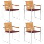 Estas sillas de jardín de madera están diseñadas para convertirse en el centro de atención de tu jardín o patio. Construido con teca duradera, este mueble ha sido curado, secado al horno y luego lijado para darle una apariencia muy suave. La madera de teca es conocida por su excepcional solidez y resistencia a la intemperie, lo que la hace mucho más adecuada para muebles de jardín que cualquier otro tipo de madera. La madera de teca es la elección perfecta si deseas comprar un mueble de jardín duradero. La estructura de acero inoxidable de alta calidad también los hace altamente duradero, resistentes al robusto óxido. El cojín incluido es más que un práctico aporte; también tiene una función decorativa. Siéntate para disfrutar de una deliciosa estancia en el exterior o simplemente relájate y disfruta del clima con este clásico juego de sillas de jardín. Nota: Para prolongar la vida útil de los muebles de exterior, te recomendamos que los limpies con regularidad y no los dejes al aire libre sin protección innecesariamente.Limpiar: Usa una solución de jabón suaveAlmacenamiento: Si es posible, guarda el producto en un lugar fresco y seco en el interior. Si el producto se almacena al aire libre, protégelo con una funda impermeable. Limpia y seca el exceso de agua o nieve de las superficies planas después de una lluvia o nevada. Permite la ventilación para evitar daños relacionados con la humedad.