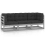 Juego de muebles de jardín 3 pzas y cojines madera pino maciza