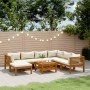 Muebles de jardín 7 pzas cojines crema madera maciza de acacia