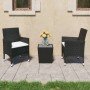 Set de bistró jardín 3 pzas ratán sintético madera maciza negro