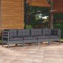 Juego de muebles de jardín 4 pzas y cojines madera maciza pino