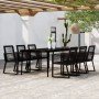 ¡Crea una estética atractiva y cohesionada en el espacio al aire libre de tu casa con este juego de comedor para jardín! Esta mesa de comedor está hecha de una estructura de acero con recubrimiento en polvo, robusta y estable para el uso diario al aire libre. La superficie de vidrio liso es fácil de limpiar con un paño húmedo y es perfecto para colocar comidas, bebidas y otros artículos decorativos. Las sillas de jardín están hechas de ratán de PVC, tejido sobre una fina estructura de acero lacado, lo que las hace estables y resistentes a las inclemencias del tiempo y a los rayos UV. Nota: Para prolongar la vida de tus muebles de exterior, te recomendamos que los protejas con una funda impermeable.