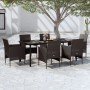 Juego de comedor de jardín 7 piezas con cojines beige y negro