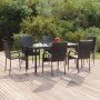 ¡Este juego de comedor para jardín es una excelente opción para cenar o relajarse en el espacio al aire libre de tu casa! Las estructuras de acero con recubrimiento en polvo hacen que la mesa y las sillas sean robustas y estables para usar a diario en exteriores. Gracias al ratán PE resistente al agua, las sillas son fáciles de limpiar y adecuadas para el uso diario. Asimismo, la lisa superficie de vidrio se limpia fácilmente con un paño húmedo y es perfecta para colocar comida, bebida y otros artículos decorativos. Nota: Para prolongar la vida de tus muebles de exterior, te recomendamos que los protejas con una funda impermeable.