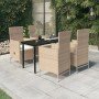 ¡Este elegante juego de comedor para jardín está destinado a ser el centro de atención del jardín o patio! ¡Es una opción genial para comer o relajarse al aire libre! Las estructuras de acero con recubrimiento en polvo hacen que la mesa y las sillas sean robustas y estables para usar a diario en exteriores. Gracias al ratán PE resistente al agua, las sillas son fáciles de limpiar y resistentes. El respaldo se reclina tirando del botón del lateral. Gracias a la construcción ligera, son fáciles de mover. Los cojines de asiento acolchados también dan un plus de comodidad. Las fundas de poliéster apernas necesitan cuidados y se pueden quitar para lavarlas. Asimismo, la lisa superficie de vidrio se limpia fácilmente con un paño húmedo y es perfecta para colocar comida, bebida y otros artículos decorativos. Nota: Para prolongar la vida de tus muebles de exterior, te recomendamos que los protejas con una funda impermeable.