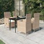 ¡Este elegante juego de comedor para jardín está destinado a ser el centro de atención del jardín o patio! ¡Es una opción genial para comer o relajarse al aire libre! Las estructuras de acero con recubrimiento en polvo hacen que la mesa y las sillas sean robustas y estables para usar a diario en exteriores. Gracias al ratán PE resistente al agua, las sillas son fáciles de limpiar y resistentes. El respaldo se reclina tirando del botón del lateral. Gracias a la construcción ligera, son fáciles de mover. Los cojines de asiento acolchados también dan un plus de comodidad. Las fundas de poliéster apernas necesitan cuidados y se pueden quitar para lavarlas. Asimismo, la lisa superficie de vidrio se limpia fácilmente con un paño húmedo y es perfecta para colocar comida, bebida y otros artículos decorativos. Nota: Para prolongar la vida de tus muebles de exterior, te recomendamos que los protejas con una funda impermeable.