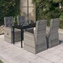 ¡Este elegante juego de comedor para jardín está destinado a ser el centro de atención del jardín o patio! ¡Es una opción genial para comer o relajarse al aire libre! Las estructuras de acero con recubrimiento en polvo hacen que la mesa y las sillas sean robustas y estables para usar a diario en exteriores. Gracias al ratán PE resistente al agua, las sillas son fáciles de limpiar y resistentes. El respaldo se reclina tirando del botón del lateral. Gracias a la construcción ligera, son fáciles de mover. Los cojines de asiento acolchados también dan un plus de comodidad. Las fundas de poliéster apernas necesitan cuidados y se pueden quitar para lavarlas. Asimismo, la lisa superficie de vidrio se limpia fácilmente con un paño húmedo y es perfecta para colocar comida, bebida y otros artículos decorativos. Nota: Para prolongar la vida de tus muebles de exterior, te recomendamos que los protejas con una funda impermeable.