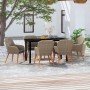 ¡Este elegante juego de comedor para jardín está destinado a ser el centro de atención del jardín o patio! ¡Es una opción genial para comer o relajarse al aire libre! Las estructuras de acero con recubrimiento en polvo hacen que la mesa y las sillas sean robustas y estables para usar a diario en exteriores. Gracias al ratán PE resistente al agua, las sillas son fáciles de limpiar y resistentes. La forma ergonómica y los cojines acolchados y extraíbles con relleno de espuma proporcionan el confort definitivo. Las fundas de poliéster apenas necesitan cuidados y se pueden quitar fácilmente para lavarlas. Asimismo, la lisa superficie de vidrio se limpia fácilmente con un paño húmedo y es perfecta para colocar comida, bebida y otros artículos decorativos. Nota: Para prolongar la vida de tus muebles de exterior, te recomendamos que los protejas con una funda impermeable.
