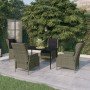 ¡Disfruta de una buena comida o cena en el espacio al aire libre de tu casa con este juego de comedor para jardín! Con un diseño elegante, ¡se convertirá en el centro de atención del jardín o patio! El práctico juego de comedor para exterior tiene una estructura de acero, por lo que es fuerte y robusto. Las sillas reclinables de jardín están hechas de ratán PE, resistente al agua y que no necesita mantenimiento, por lo que son perfectas para usar al aire libre. Los cojines acolchados dan un plus de comodidad a la hora de las comidas. La funda del cojín está equipada con una cremallera, es extraíble y lavable. Gracias al mecanismo de elevación a gas, el respaldo también se puede regular para que encuentres la mejor postura. Al tocar el botón del lateral, el respaldo se reclina para ofrecer una posición cómoda. Asimismo, la lisa superficie de vidrio se limpia fácilmente con un paño húmedo y es perfecta para colocar comida, bebida y otros artículos decorativos. Nota: Para prolongar la vida de tus muebles de exterior, te recomendamos que los protejas con una funda impermeable.