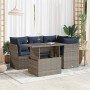 Set sofás jardín y cojines 5 pzas ratán sintético acacia negro