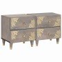 Este armario de noche moderno es la mezcla perfecta de estilo y función para tu dormitorio. Con un diseño minimalista, se integra perfectamente en cualquier interior mientras cumple su función de almacenamiento. Su diseño limpio, junto con esos pomos de latón tan vivos, no solo es atractivo, sino también súper práctico. Ideal para quienes buscan combinar sofisticación y utilidad, es el compañero perfecto para tu espacio personal. Madera maciza de mango: Este armario de noche está hecho con madera maciza de mango de calidad, que le da durabilidad y una construcción robusta. La madera de mango, con sus patrones de veta únicos, aporta un toque visual elegante a cualquier mueble. Es ideal para quienes buscan algo atractivo para su dormitorio. Frontal pintado a mano: Con un frontal pintado a mano, este armario tiene un carácter único. Este toque artesanal añade un encanto especial a tu decoración, haciendo que el armario sea un punto focal en la habitación. Perfecto para añadir creatividad y calidez a tu hogar. Pomos de latón y patas cónicas: Los elegantes pomos de latón complementan su diseño sofisticado. Las patas cónicas, también de latón, no solo le dan estabilidad, sino que también mejoran su estética moderna. Estos detalles refuerzan tanto la funcionalidad como el estilo del armario. Espacio de almacenamiento práctico: Este diseño ofrece suficiente espacio para guardar lo que necesites tener a mano junto a la cama. Ya sean libros, electrónica o cualquier accesorio, el armario está optimizado para darte acceso fácil sin perder en estilo, manteniendo el espacio ordenado y adecuado como mesita de noche. Cuidado y mantenimiento fáciles: Mantener este armario en buen estado es fácil: solo necesitas limpiarlo con un paño seco de vez en cuando para mantener su brillo. Con este diseño, es muy sencillo asegurarse de que sigue siendo una buena inversión para tu hogar.