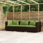 Set muebles de jardín 4 piezas y cojines ratán sintético marrón